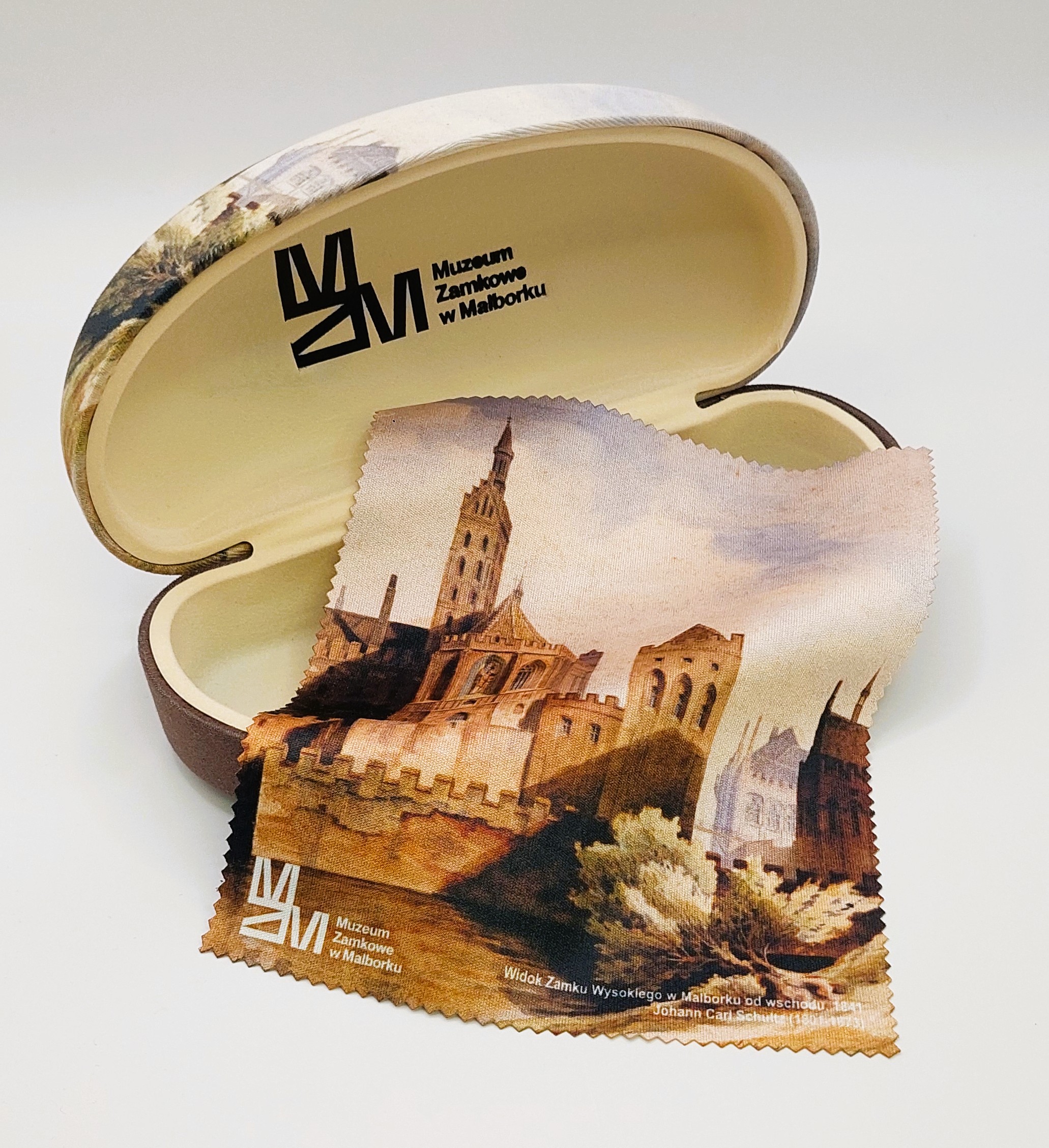 Etui na okulary wyłożone miękką wyściółką, która chroni przez zarysowaniami. Do etui w komplecie dołączona jest ściereczka do okularów.