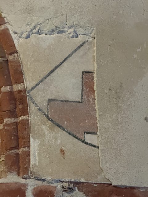Przez długi czas uważaliśmy, że została zniszczona, ale … wykonana w ubiegłym roku odkrywka pokazała, że przynajmniej częściowo mogła się zachować. Na zdjęciu widać fragment herbu Wernera von Orseln. Jaka część polichromii upamiętniającej jego śmierć ocalała, w jakim jest stanie? To pytania, z którym weszliśmy w bieżący rok i na które będziemy mogli odpowiedzieć jesienią. Na pewno odsłonimy wszystkie fragmenty, jaki zachowały się na ścianie.